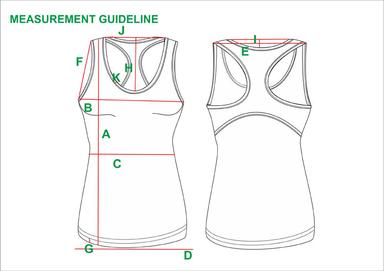 Accelerate your apparel production with our comprehensive tech pack template. Ladies Racer Back Tank Top. This digital download includes detailed measurement specs and professional-quality sketches. Simply add your brand elements and send it to your manufacturer.