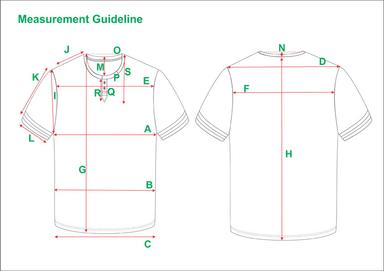 Tech Pack Template Men’s Crewneck T-Shirt Regular Fit USA Standard Size. Complete Tech Pack with Detailed Graded Measurement Spec Sheet Ready for Sampling and Production.